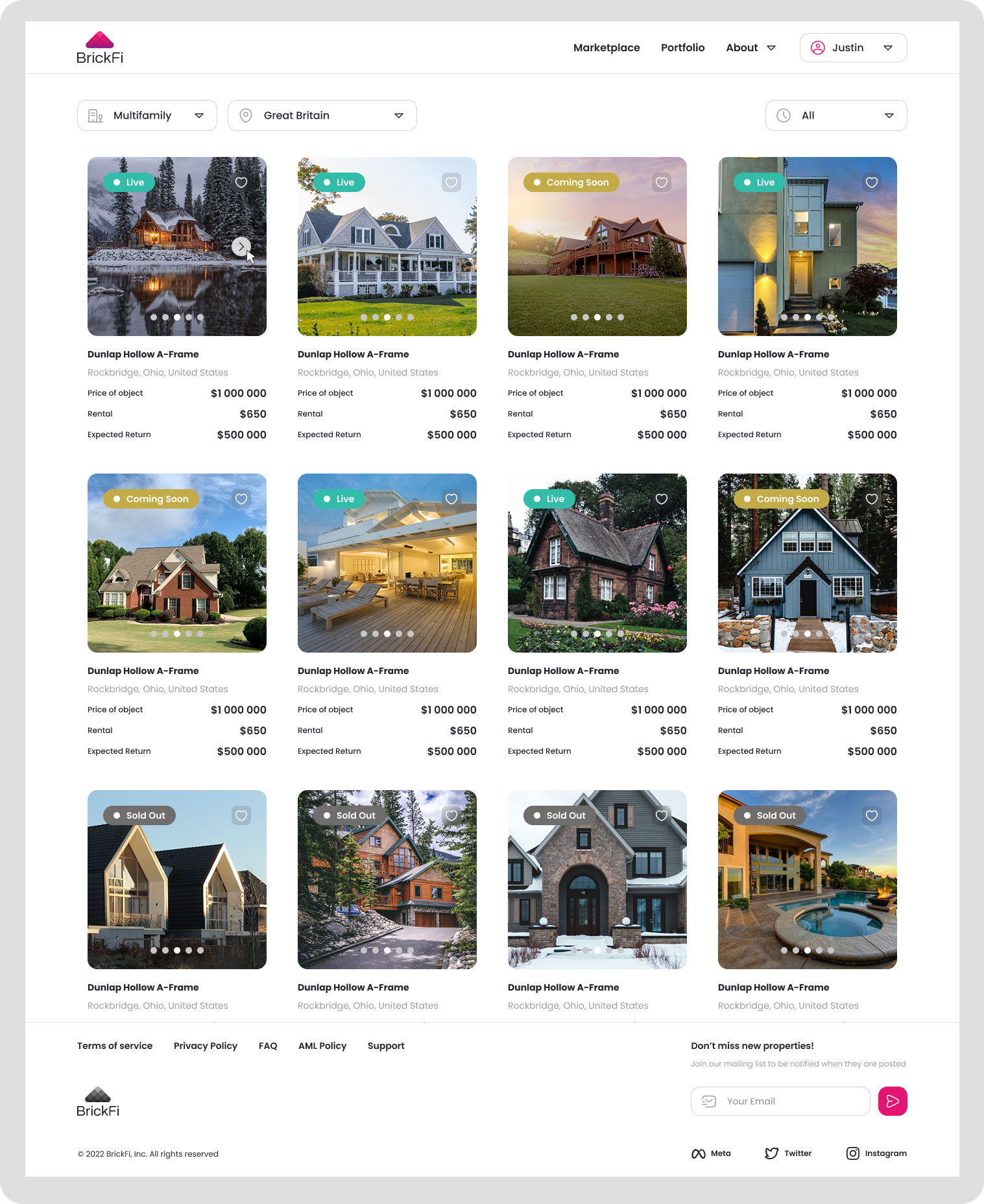 The platform includes all the standard functions of the marketplace, as well as tools for managing financial flows, including the collection and distribution of funds. Investors can top up their balance and participate in investment rounds, receiving dividends after the commissioning of properties.